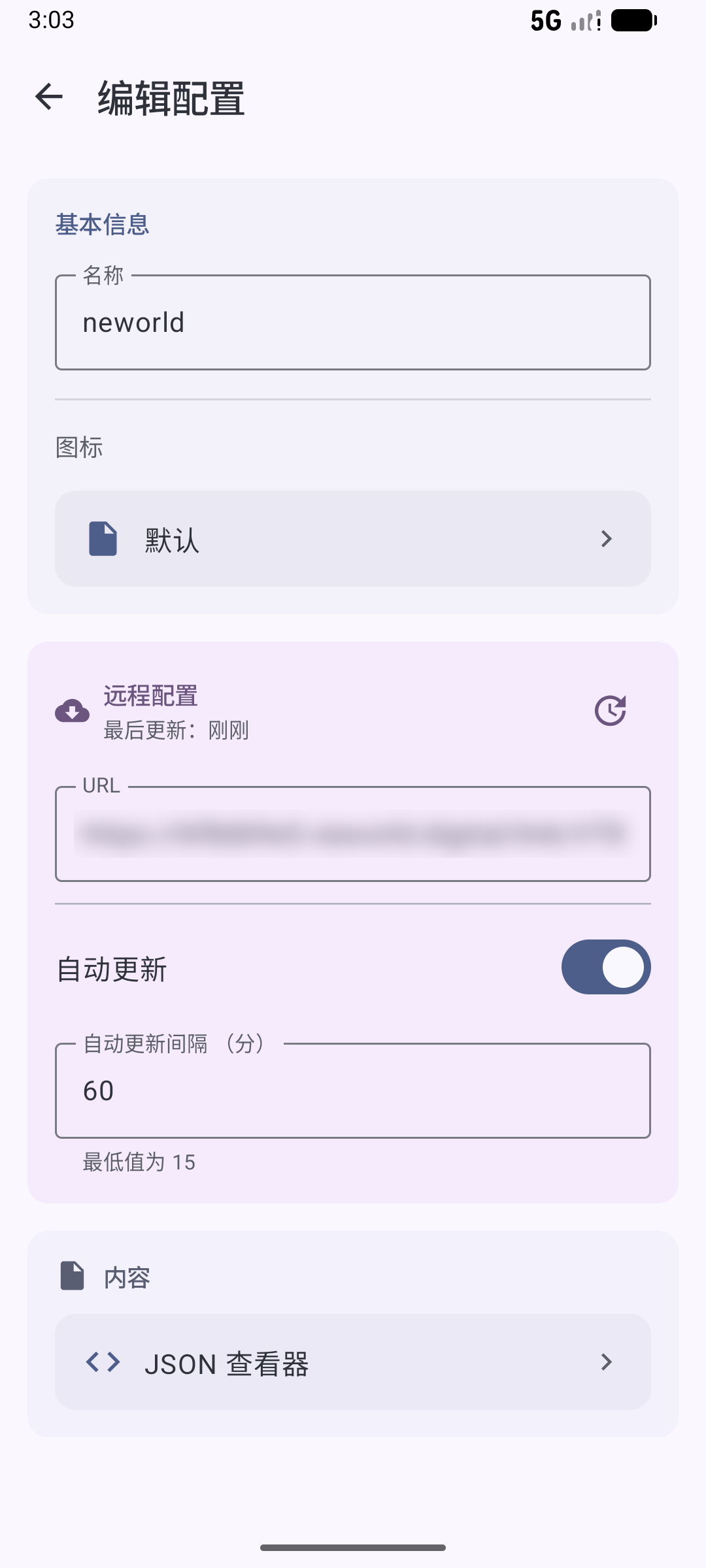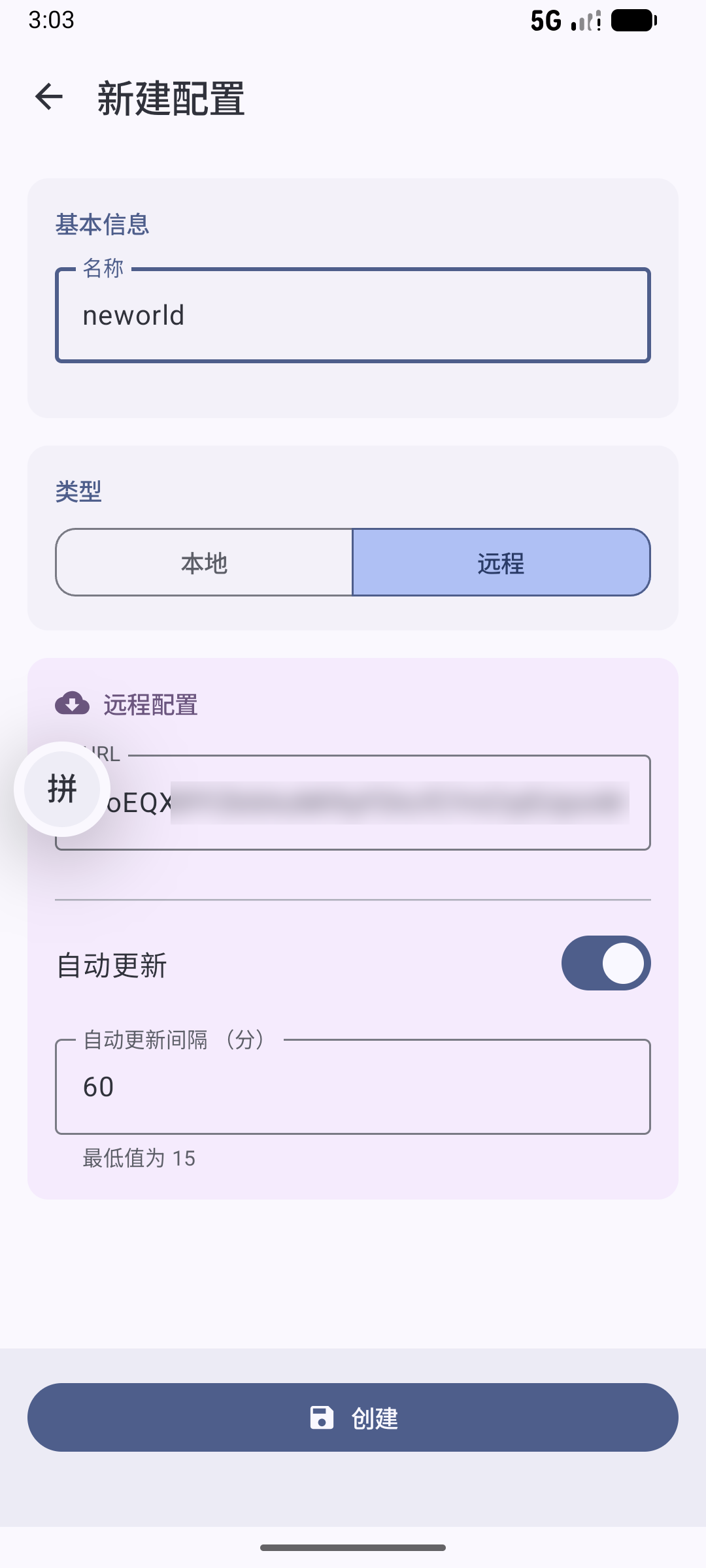 - 远程配置一栏,粘贴刚才复制的订阅地址