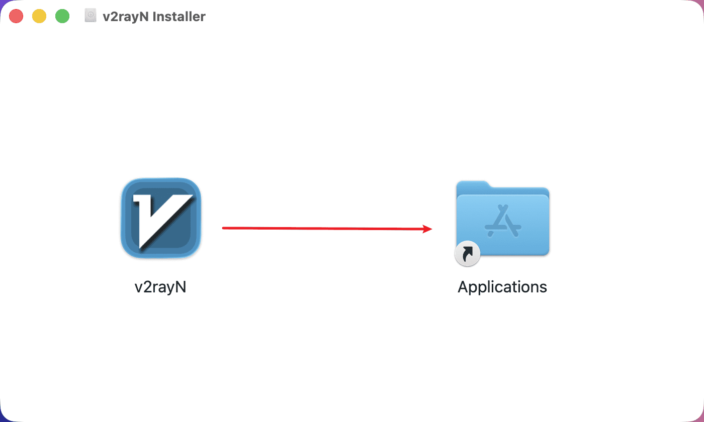 然后依照下图操作(配图虽不符,但操作时拖动 v2rayn 应用程序即可)
