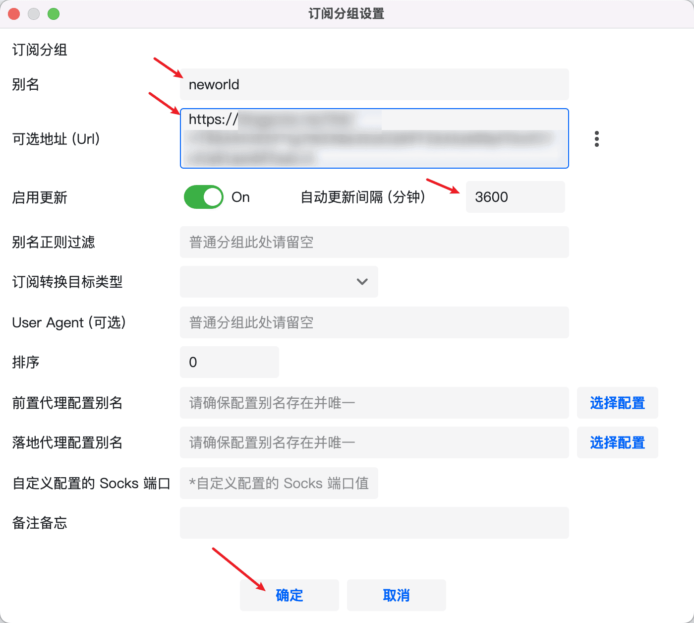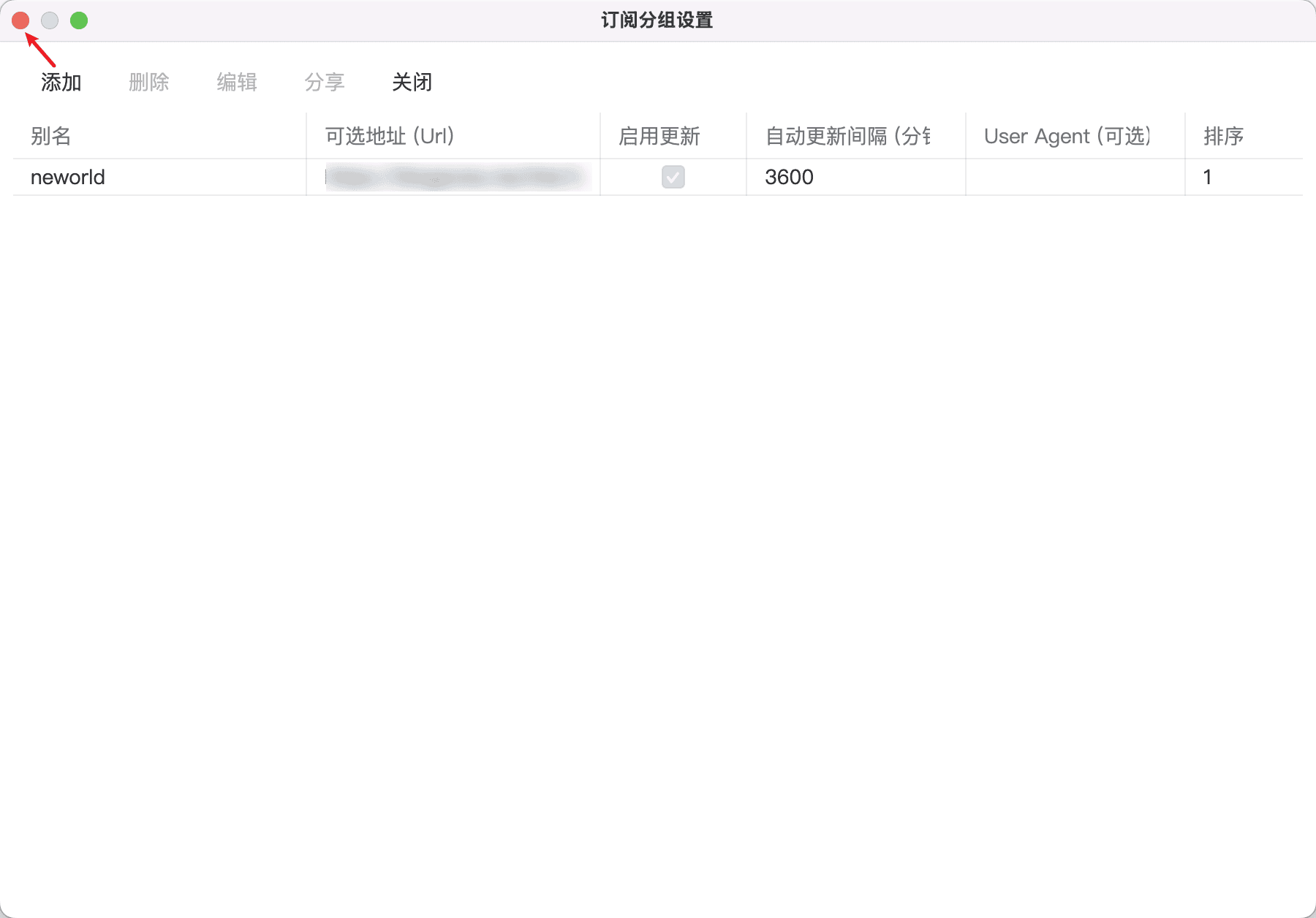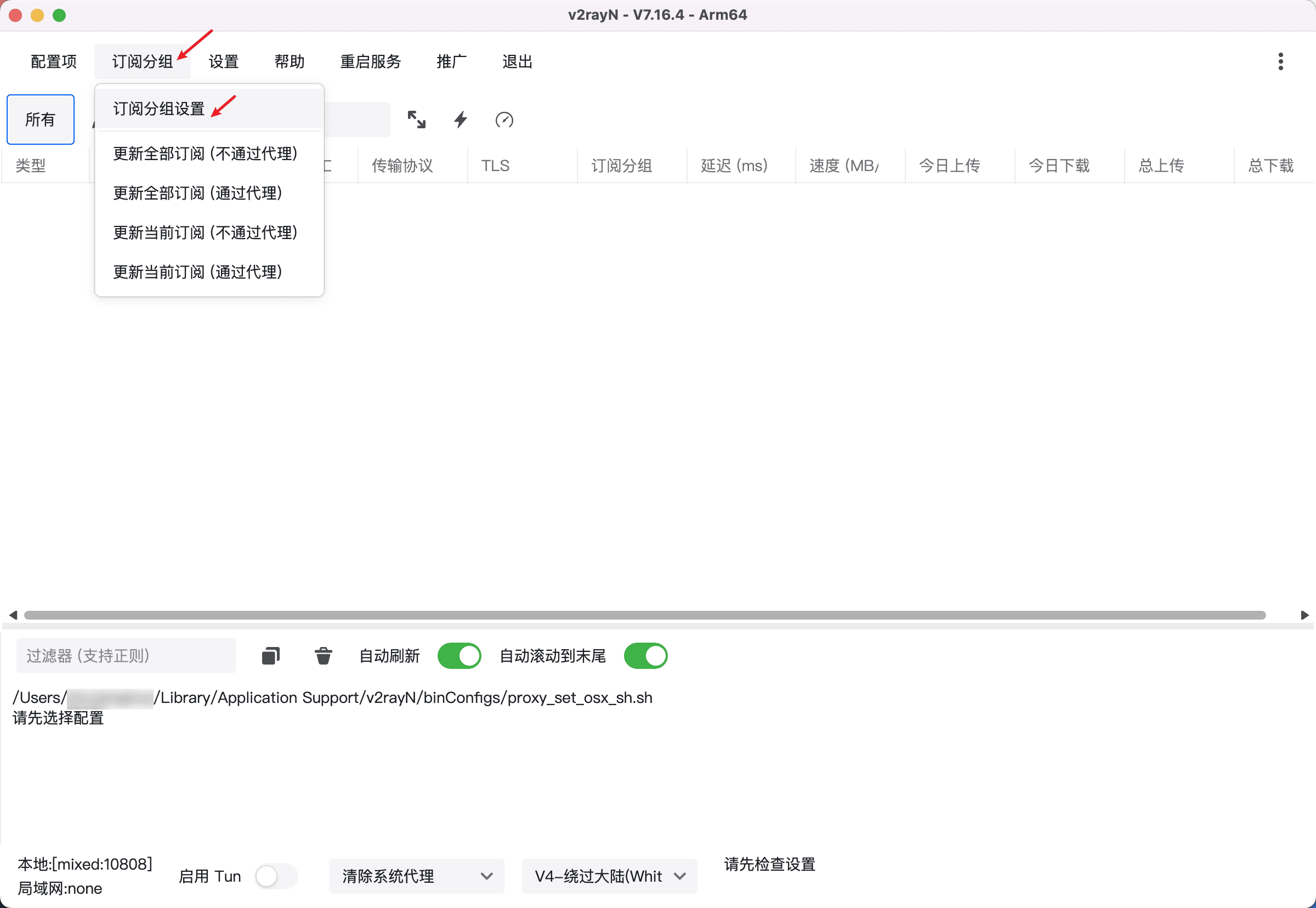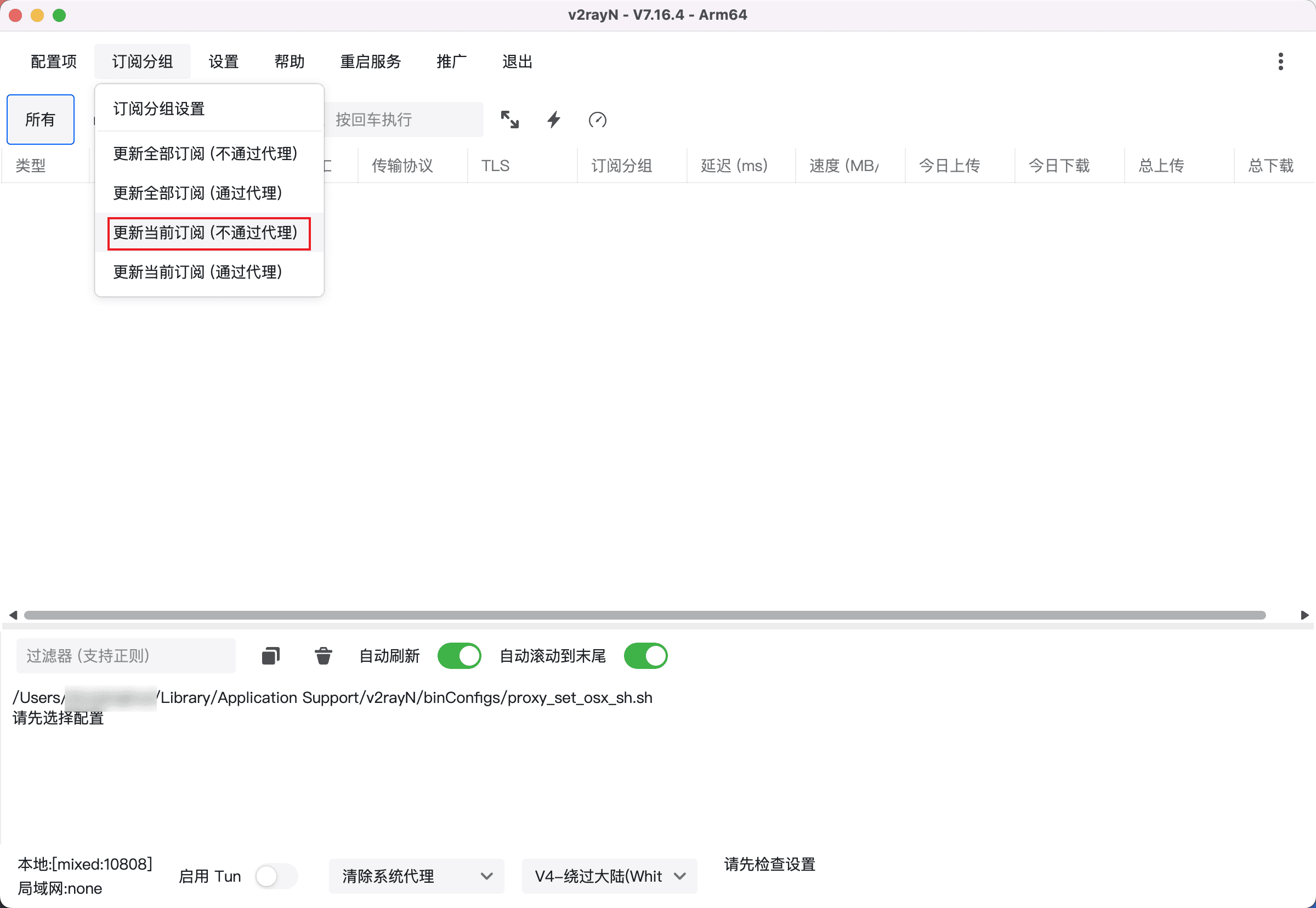 点击 订阅分组,点击 更新当前订阅(不通过代理)