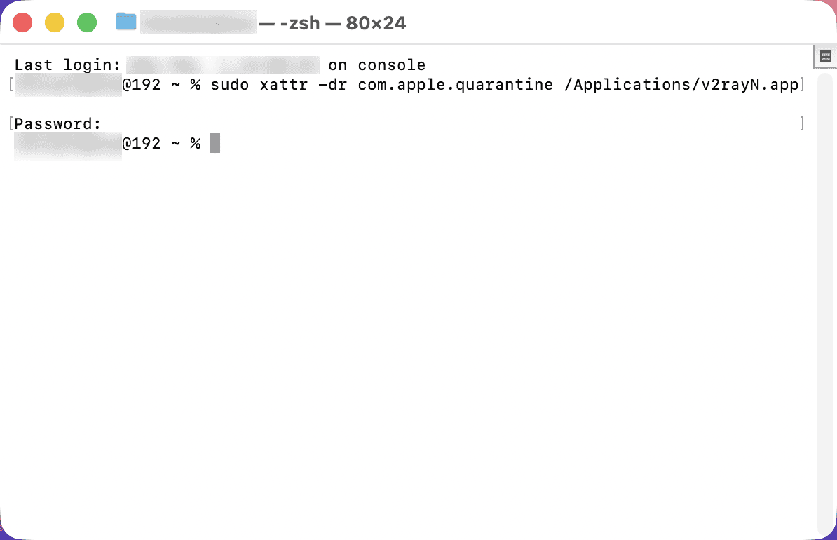 然后按回车执行,会要求输入电脑登录密码,输入完成后按 enter 键即可