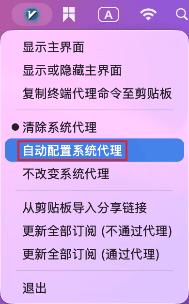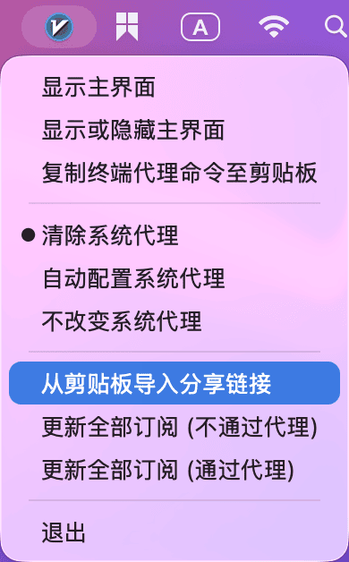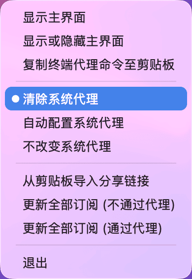 无需使用时,右键软件图标,然后点击 清除系统代理