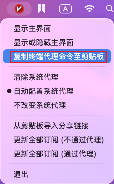 如果你需要为 git docker npm 等命令配置代理加速,可以点击 复制终端代理命令至剪切板