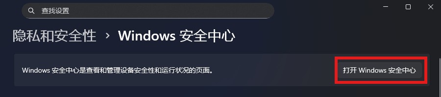 2.进入设置内的隐私与安全性,选择顶部的Windows安全中心,并选择顶部的打开Windows安全中心