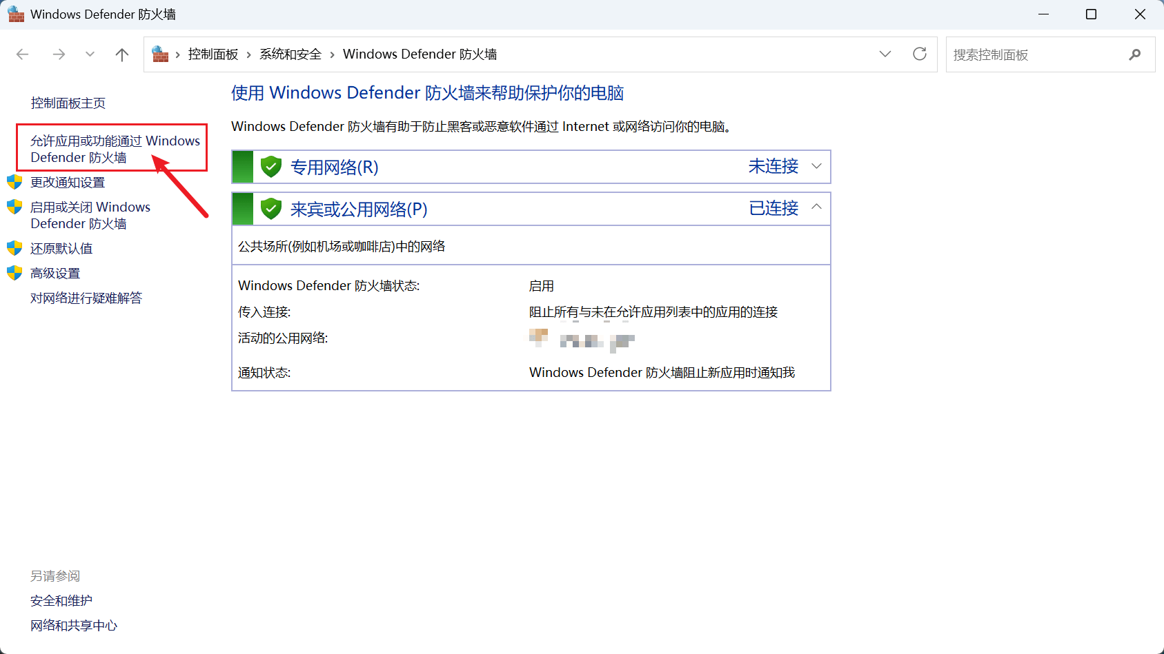 点击 确定 打开防火墙管理
