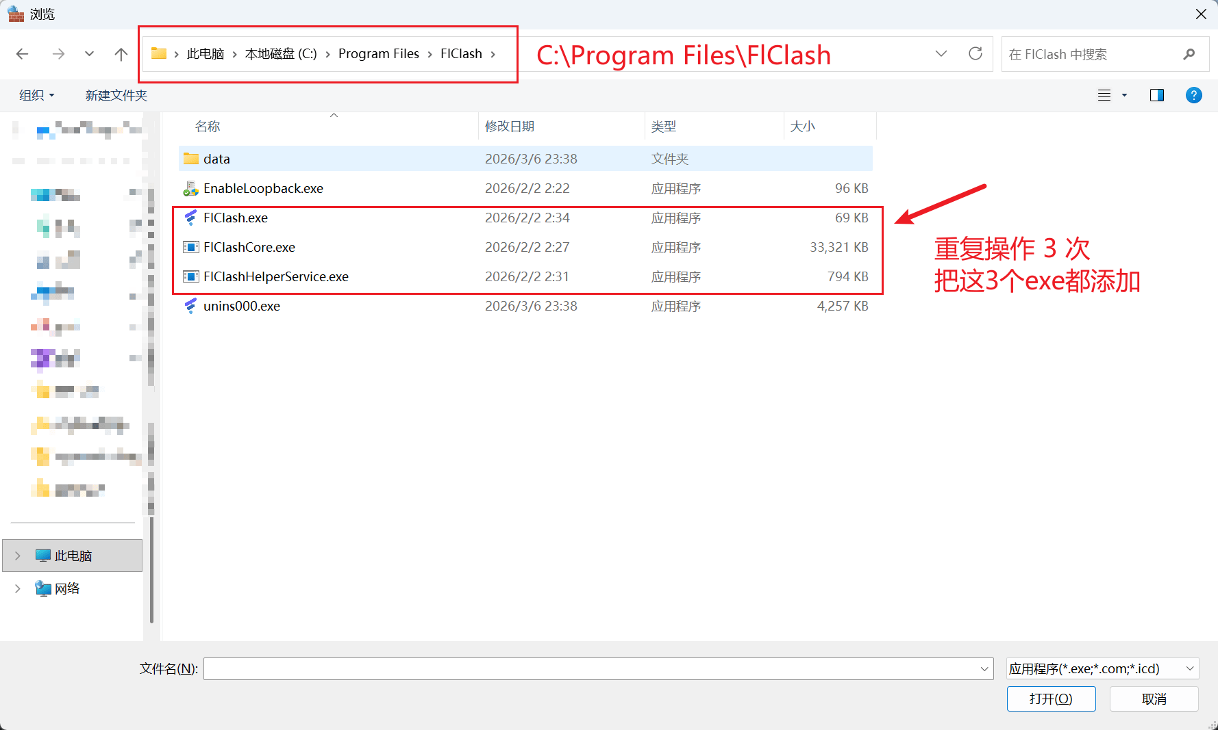依次添加 3 个exe